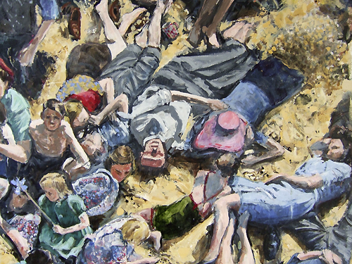 I particularly like the fact that the pictures can be viewed effectively from a distance and differently , but equally effectively, from close up. The Initial images are necessarily small, the paintings fairly large and this gives plenty of room for changes to occur during the painting process.